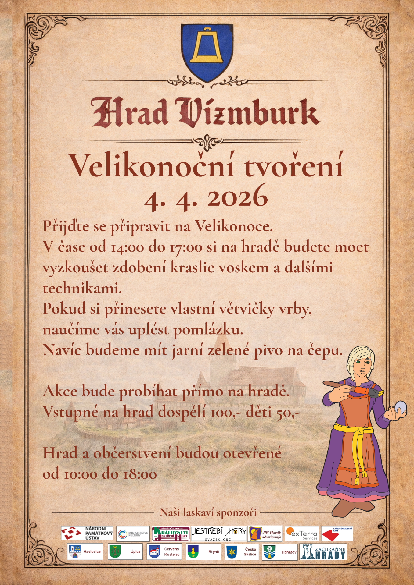 V čase od 14:00 do 17:00 si na hradě budete moct vyzkoušet zdobení kraslic voskem a dalšími technikami.