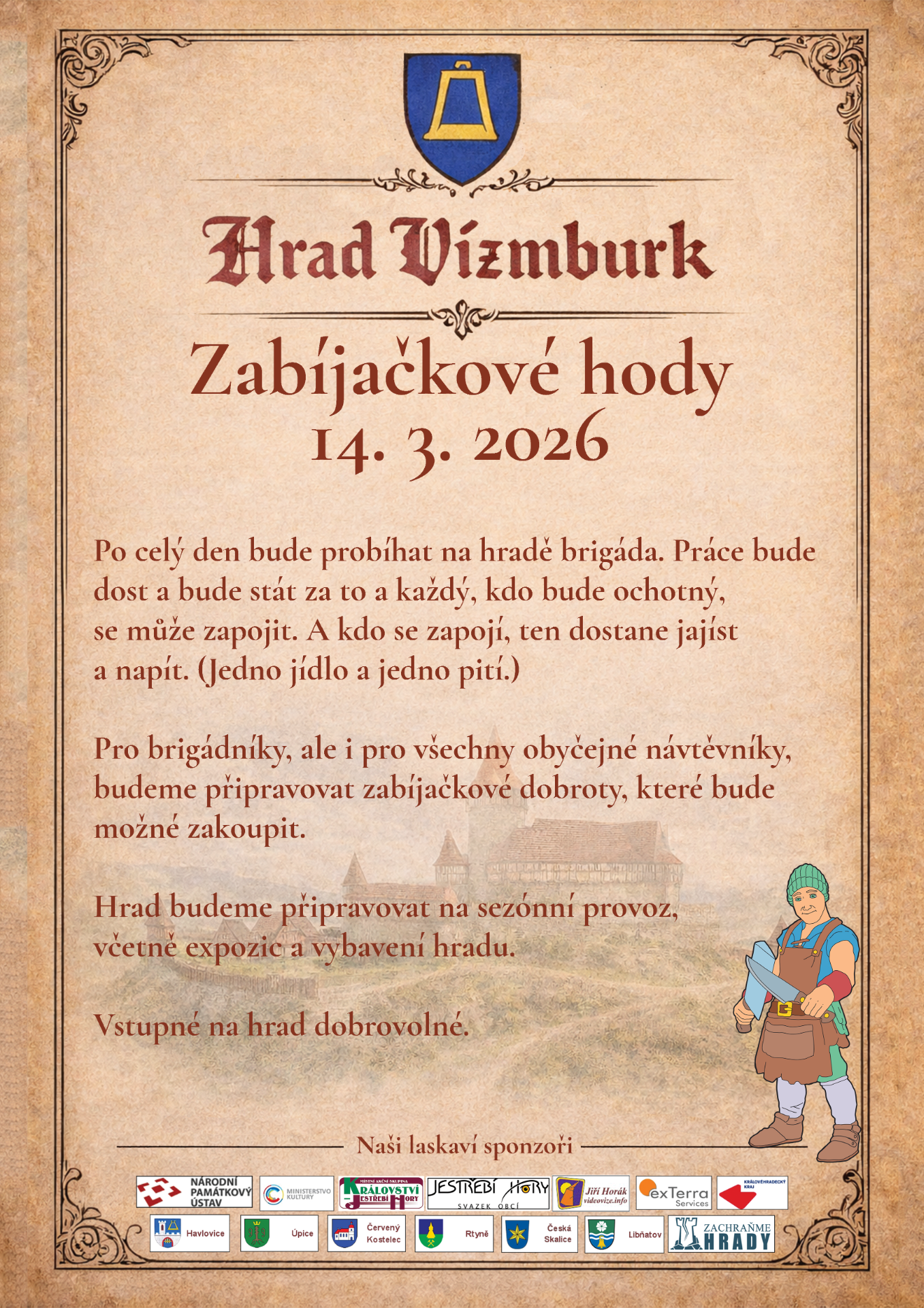 Po celý den bude probíhat na hradě brigáda. Práce bude dost a bude stát za to a každý, kdo bude ochotný, se může zapojit. A kdo se zapojí, ten dostane jajíst a napít. (Jedno jídlo a jedno pití.)