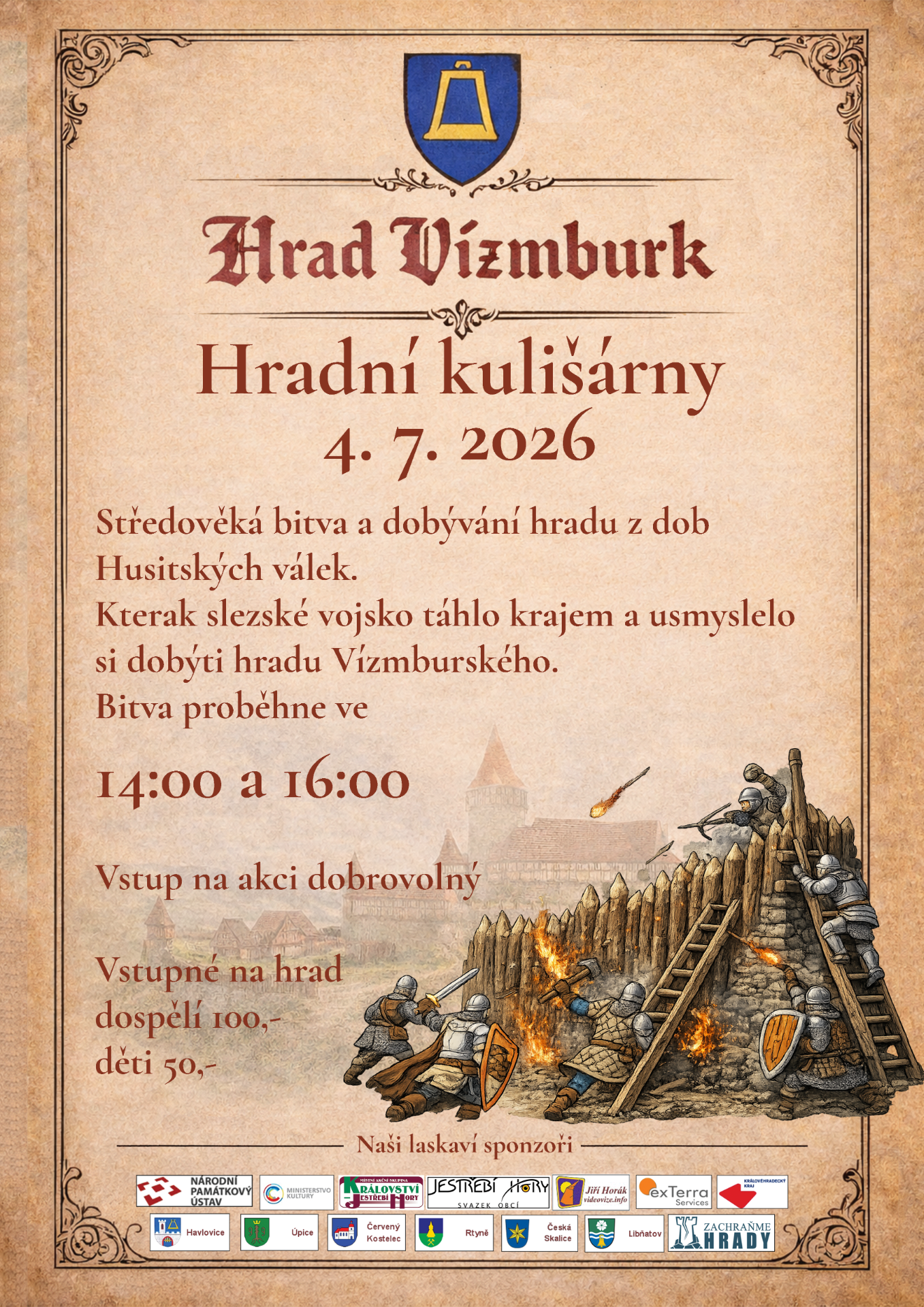 Středověká bitva a dobývání hradu z dob Husitských válek. Kterak slezské vojsko táhlo krajem a usmyslelo si dobýti hradu Vízmburského.