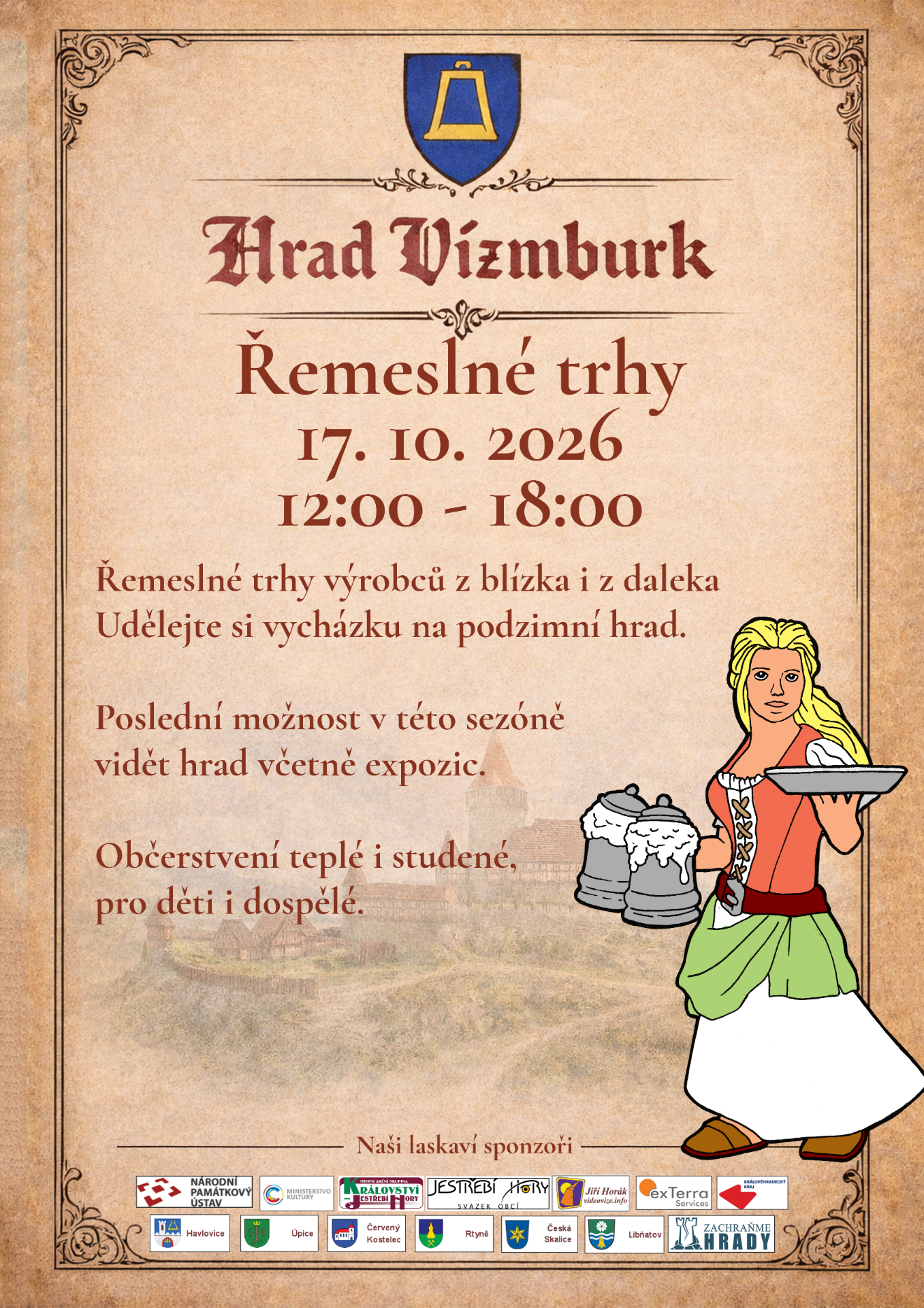 Řemeslné trhy výrobců z blízka i z daleka. Udělejte si vycházku na podzimní hrad. Poslední možnost v této sezóně vidět hrad včetně expozic.