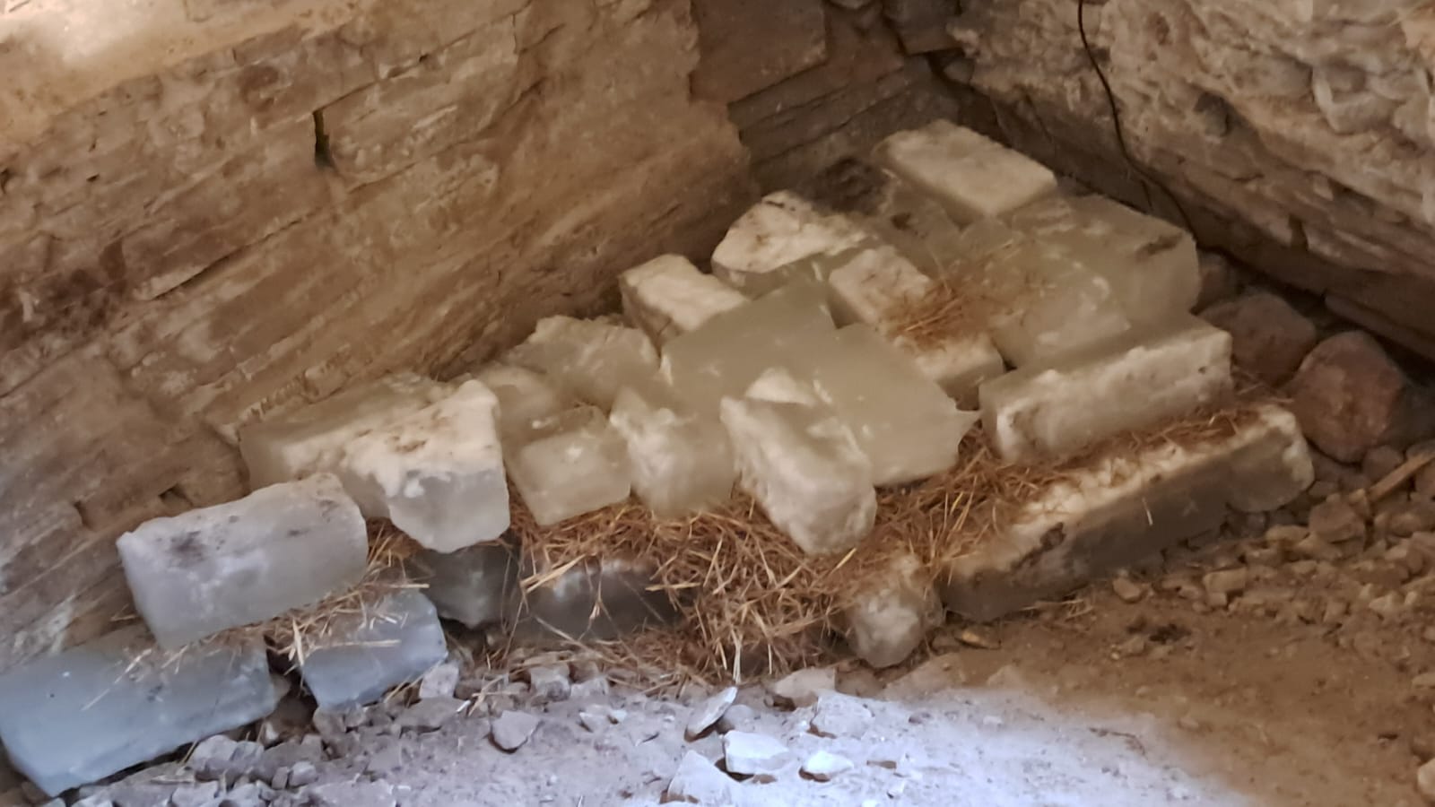 Dnes jsme si zahráli na ledaře a do hradního sklepení uložili fůru ledu. Proložili jsme ho slámou a jak pevně věříme, vydrží nám takováto lednice jistě do příští zimy. Nebo alespoň do léta. Během roku hodláme monitorovat, kolik ledu nám ještě zbývá. A i když se naše hromádka zdá ve sklepě docela malá, byla fuška všechen ten led nařezat, vytahat z vody a pak nanosit. Jedná se o náš malý archeologický experiment a pokud se osvědčí, příští rok ho třeba zopakujeme a ledu naděláme víc. Pojďte se podívat samy, až půjdete okolo.
